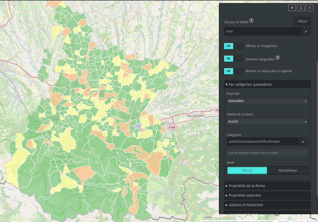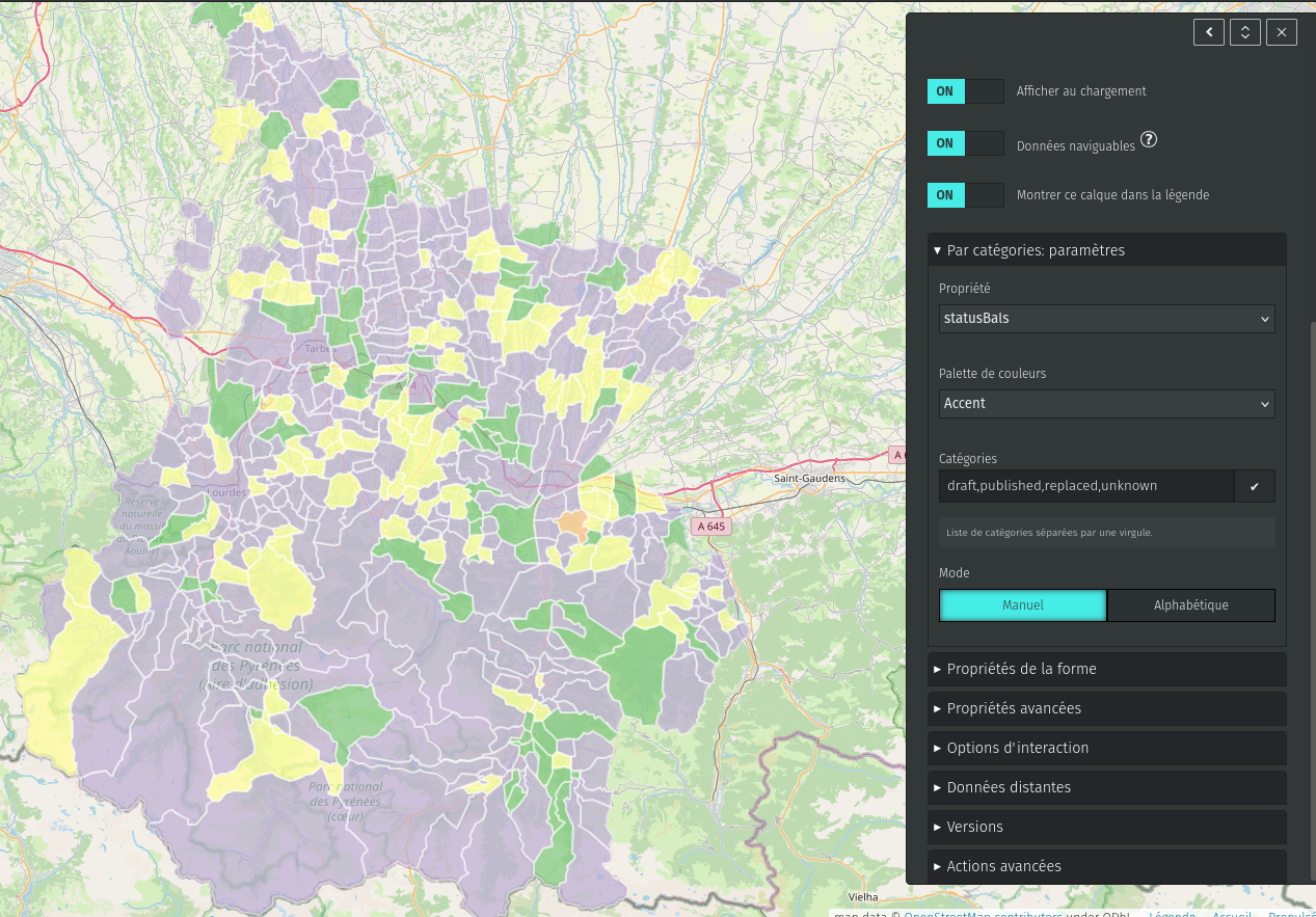 Terminer par le choix de la catégorie à afficher. Sur la présente carte, l'important était d'afficher l'état d'avancement, ce qui correspond à "statusBal".