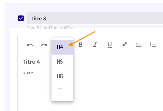 #### ✅ **Choisir la taille du titre approprié** par rapport au titre supérieur :