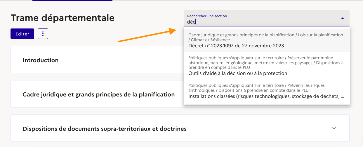 #### ✅ Retrouvez rapidement une section dans la trame départementale
